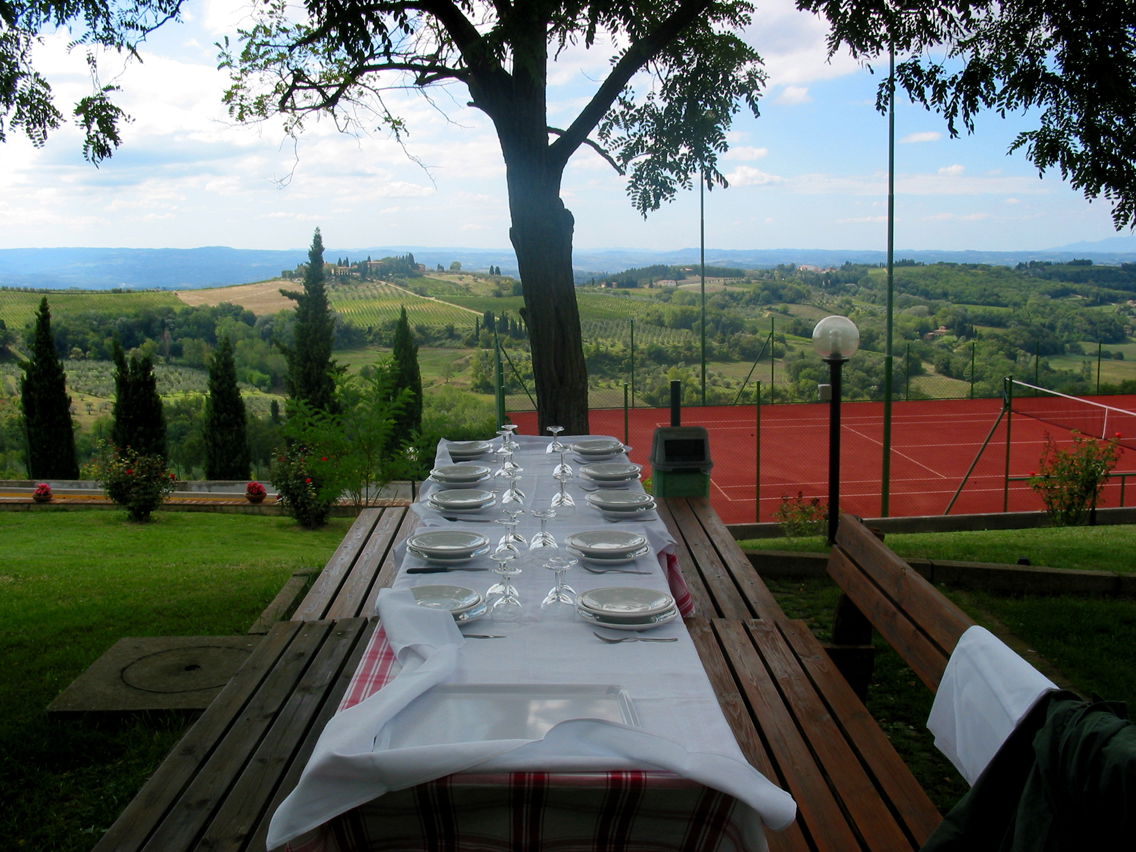 Making a name for yourself in Chianti is not easy; competing with other vineyards, other vacation rentals and other Tuscans offering the same brand of warm Italian-styled hospitality. So Roberto and Monica created something even more enticing ... family dinner nights. Weather and time permitting, they organize two family-style Italian meals during the week, normally on Tuesday and Thursday, where the guests are invited to join them in the garden at the long table in the shade of the cypress and walnut trees.