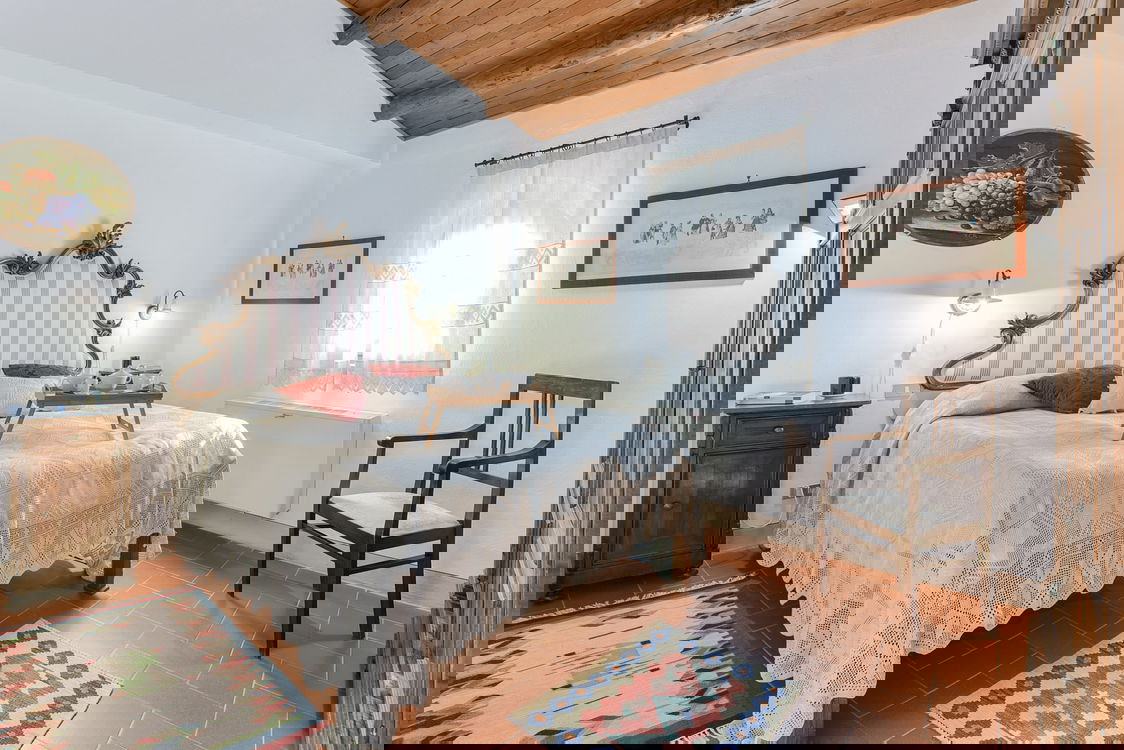 The largest apartment is called Viticcio, and is approximately 100 square meters with three bedrooms and two bathrooms. Especially nice is the balcony area and the romantic four-poster bed. I particularly liked the rich colors and textures of the linens.