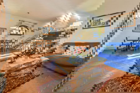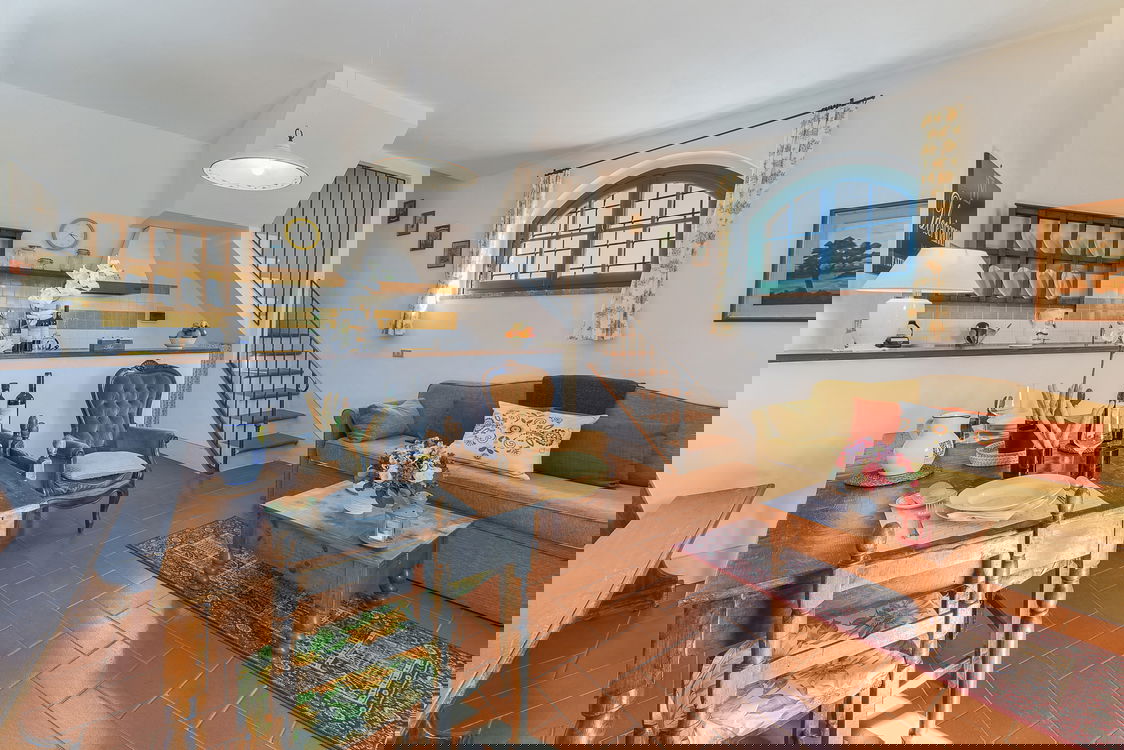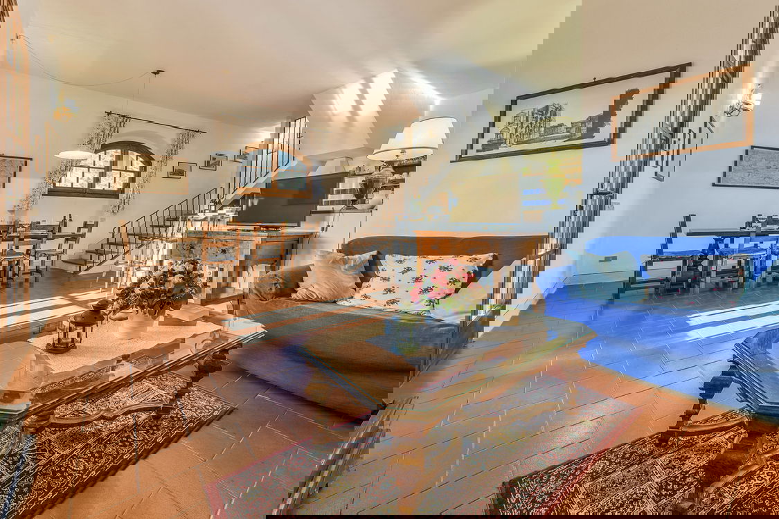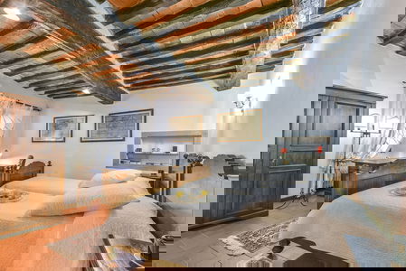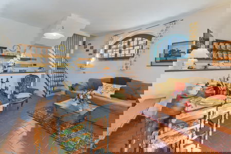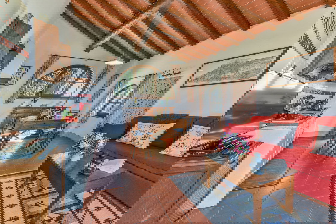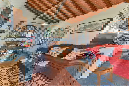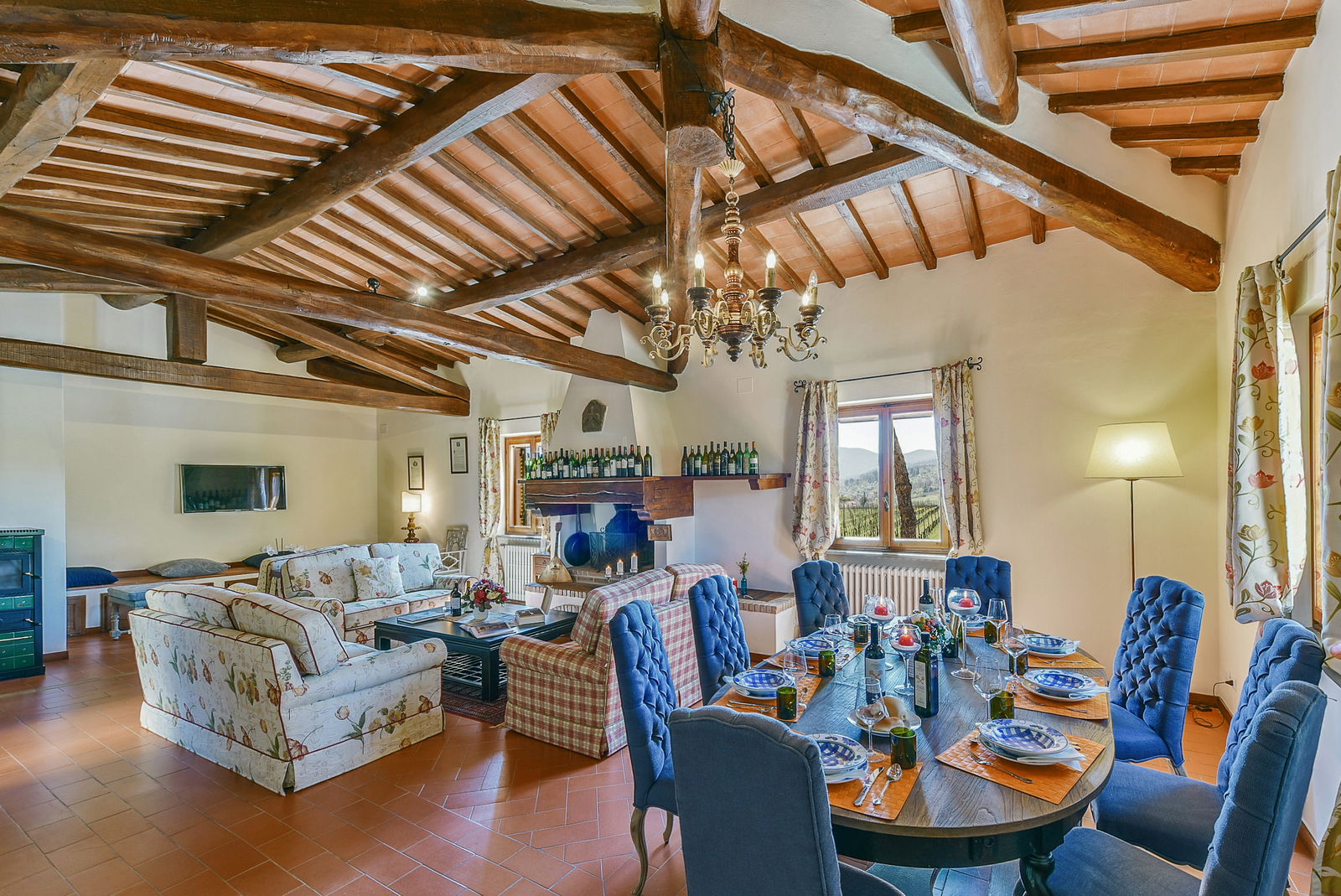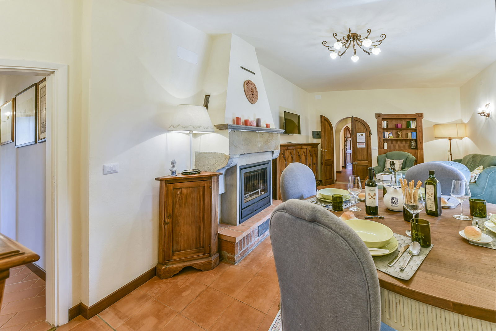 The Belvedere apartment features a super-equipped kitchen (large oven, refrigerator and a wide selection of kitchen appliances) and a combined living room and dining room area with a focolare, what a traditional Tuscan fireplace is called locally.
