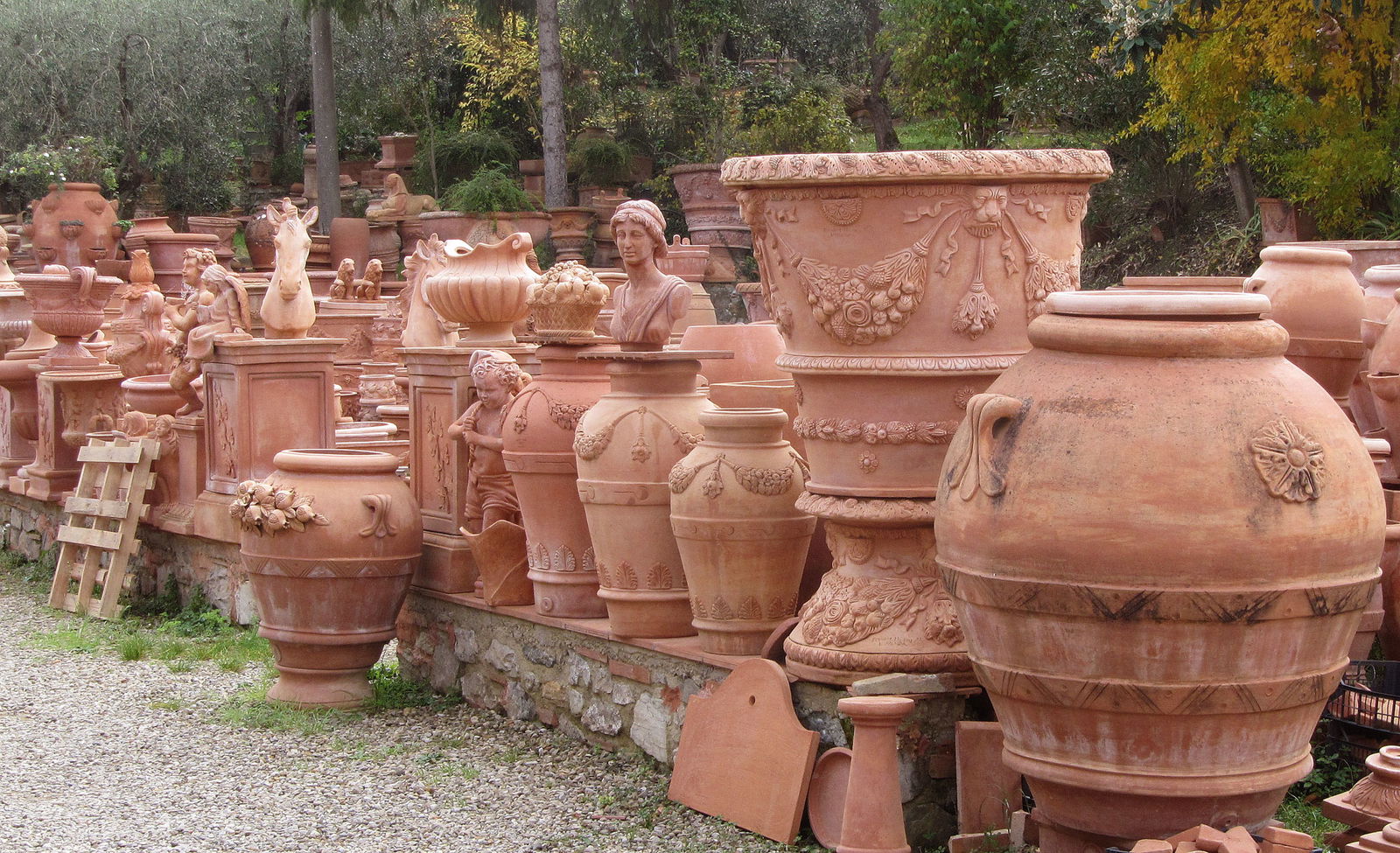 The dirt that is found in and around Impruneta is particularly suited to creating a strong and durable clay which is then placed in kilns to acquire the characteristic burnt orange coloring. There are three important "fornace" (kilns) which still follow the age old techniques (dating back to 1098). Though we encourage you: don't stop with these, there are several in the area. Sme of the more well known on the international scene are Poggi Ugo, Fornace Masini and M.I.T.A.L who, in 2014, celebrated 100 years of working with terracotta. These workshops are open to the public for both purchases and visits. You can see how the make the clay, form the vases and statues and then tour the kilns, some of which are hundreds of years old...and are still the very same kilns they use today.